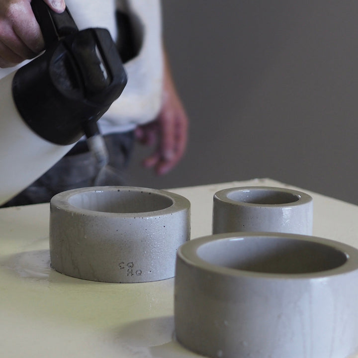 Every candle begins with a sketch, refined into a mould that captures timeless, minimal design. Each vessel is poured by hand using our UHPC concrete blend, then cured, sealed, and inspected.