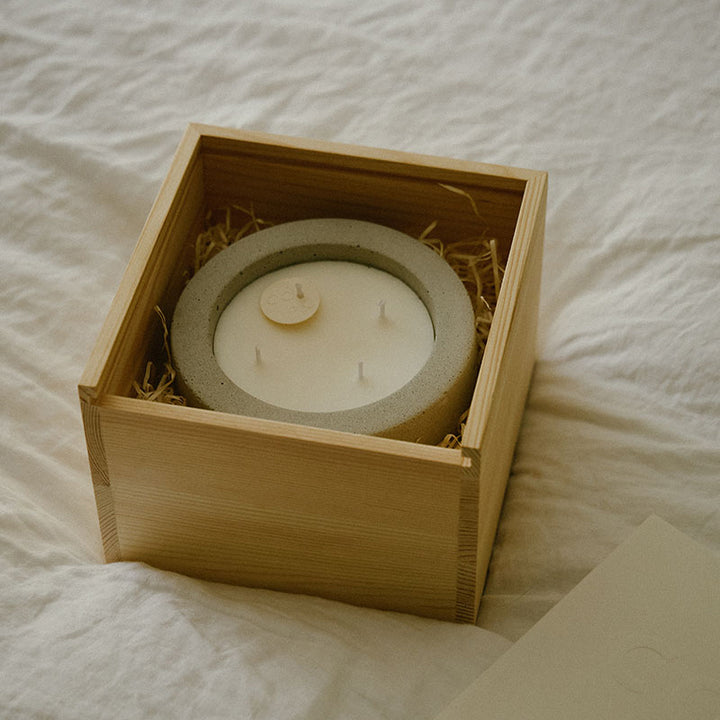 Finally, every candle is presented in eco-friendly packaging ready for your home. Finished burning? Clean out the candle vessel and reuse as a fruit bowl, planter, or thanks to the concrete style, an ornament.
